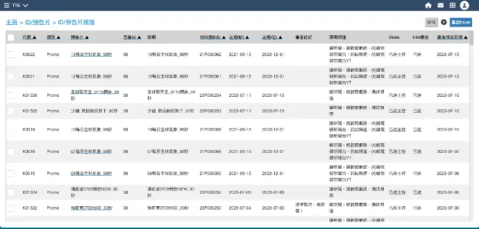 宣傳片管理功能讓您輕鬆掌握所有宣傳片的上傳、儲存及調度,確保每個影片素材都能按需使用。透過便捷的素材維護與查詢,無論是影片更新還是版本管理,都變得更加高效。無論是營銷推廣還是品牌展示,這套系統將使您的宣傳片運營流程更順暢、更專業。