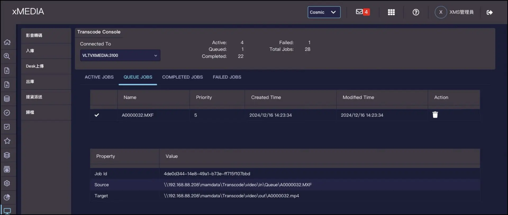 - Monitor and control by transcode console
