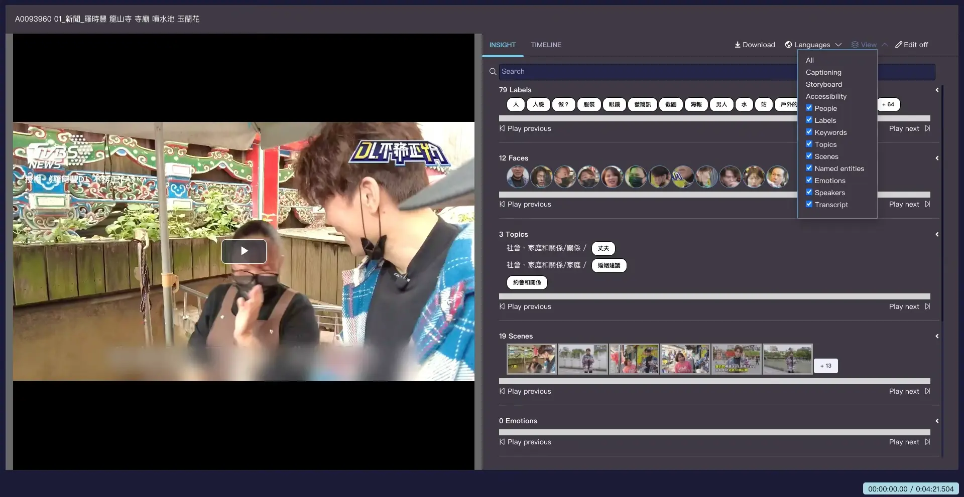 影片深度資料:Video metadata enrich by auto AI indexer tool