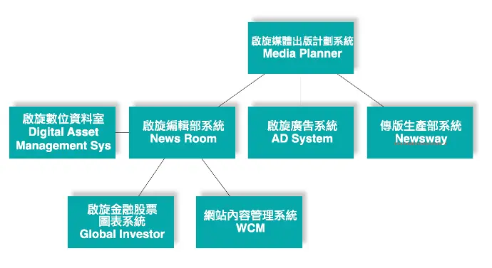 系統整合:廣告系統,排版工作室,印刷工作室,網站內容管理系統